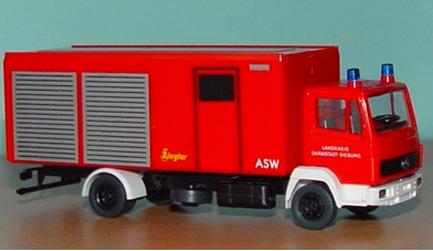 Gerätewagen Atemschutz/Strahlenschutz Im Dienst von 1988 bis 1996 Das Fahrzeug wurde ausgemustert, da es erhebliche Probleme mit dem Fahrgestell gab. Als Ersatz ist ein Abrollbehälter beschafft worden |