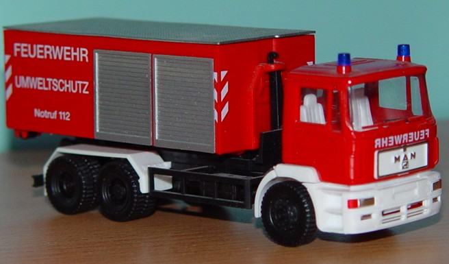 Der WLF kann zügig verschiedene Abrollbehälter aufnehmen und diese am Einsatzort absetzen. Das Fahrzeug ist momentan auf der FRW 3 stationiert.